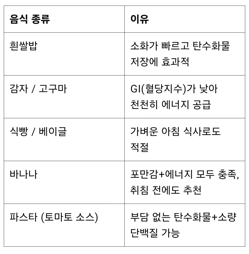 ✅ 대회 전날 핵심 전략: 탄수화물 저장